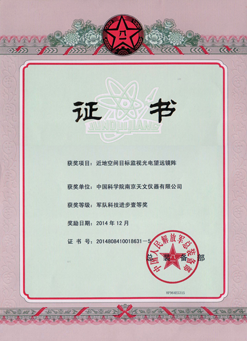 部級(jí)科技進(jìn)步一等獎(jiǎng)—近地空間目標(biāo)監(jiān)視光電望遠(yuǎn)鏡陣