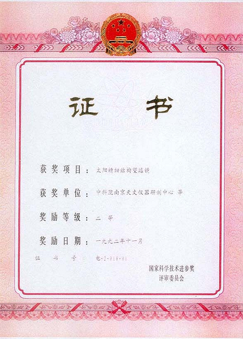 國家科技進步二等獎—太陽精細結構望遠鏡