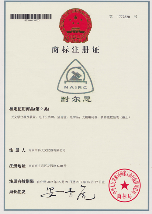 “耐爾思”商標注冊證