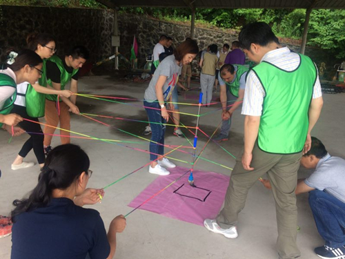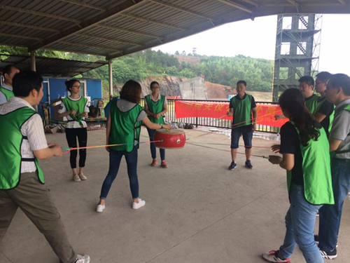 宣誓儀式結束后,全體黨員進行了戶外拓展訓練。此次拓展訓練所有黨員分成四隊,各隊成員通過歡快的游戲,打破了團隊間的隔閡,建立起彼此的信任感。根據教練的要求,各個團隊選出隊長、制定隊名、口號并且利用各種形式展現各自團隊的風采,充分的營造了團隊協作的良好氛圍。