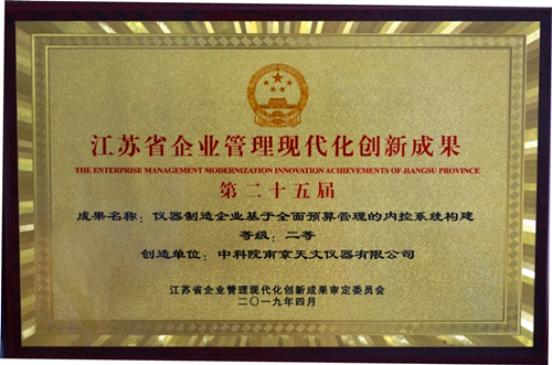近日,2019年江蘇省企業管理創新大會在寧召開。南京天儀申報的《儀器制造企業基于全面預算管理的內控系統構建》榮獲江蘇省第二十五屆企業管理現代化創新成果二等獎。該創新成果的主創人是總經理王進步和財務總監陳入奎。