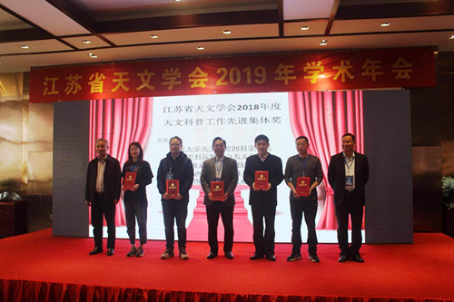 為了表彰在2018年度中積極開展科普活動、傳播科普知識、開展學術交流方面作出杰出貢獻的集體,天文學會頒發了2018年度科普工作先進集體獎,我公司獲此殊榮。會上,學會副理事長、中科院紫金山天文臺趙長印書記宣讀表彰決定,省科協學會學術部李政部長為我公司等5家獲獎單位頒獎。
