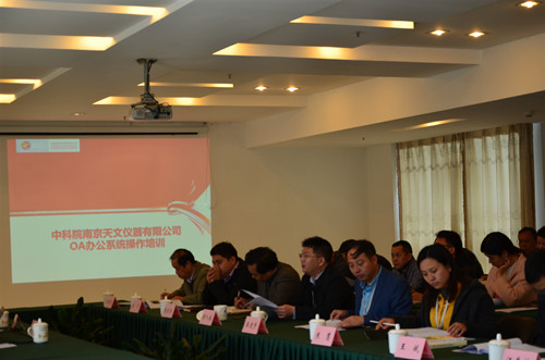 11月18日下午,南京天儀召開OA系統試運行動員部署暨培訓會。公司領導、各部門負責人、各部門OA系統管理員等40余人參加了會議。會議由公司財務總監陳入奎主持。