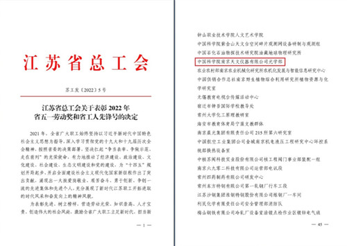 近日,江蘇省總工會表彰了一批愛崗敬業、艱苦奮斗、勇于創新、爭創一流的先進集體和先進個人,大力弘揚勞模精神、勞動精神、工匠精神。南京天儀公司光學部榜上有名,被授予“江蘇省工人先鋒號”榮譽稱號。這是在公司黨委的堅強領導下,光學部全體員工多年來堅持不懈奮斗而取得的豐碩成果。