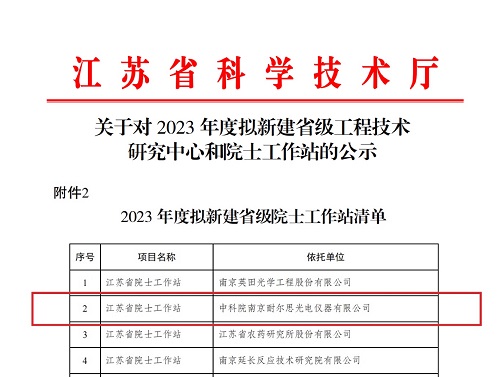 近日,江蘇省科技廳公示了2023年度擬新建的省級(jí)院士工作站名單,全省共18家,我公司的全資子公司“中科院南京耐爾思光電儀器有限公司”申報(bào)的崔向群院士工作站成功入選。