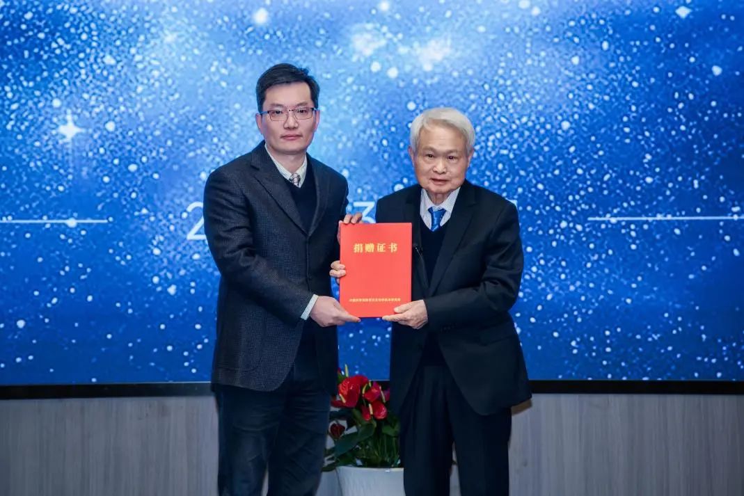 宮雪非所長(zhǎng)為蘇定強(qiáng)院士頒發(fā)捐贈(zèng)證書(shū)