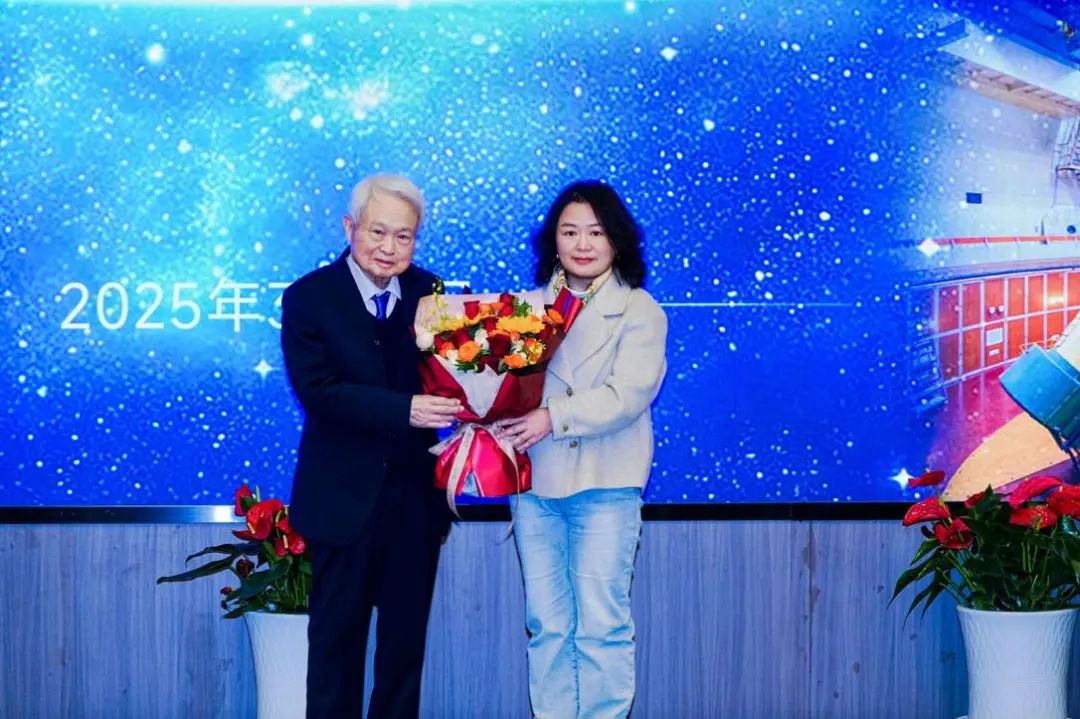宮雪非所長(zhǎng)為蘇定強(qiáng)院士頒發(fā)捐贈(zèng)證書(shū),南京大學(xué)天文與空間學(xué)院李向東院長(zhǎng)、南京天光所袁祥巖書(shū)記和天儀公司李海波董事長(zhǎng)共同為蘇院士頒發(fā)《感謝狀》。最后,青年科研人員代表白華研究員向蘇院士敬獻(xiàn)鮮花。